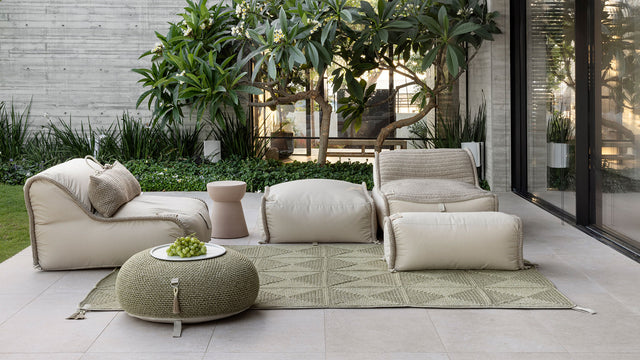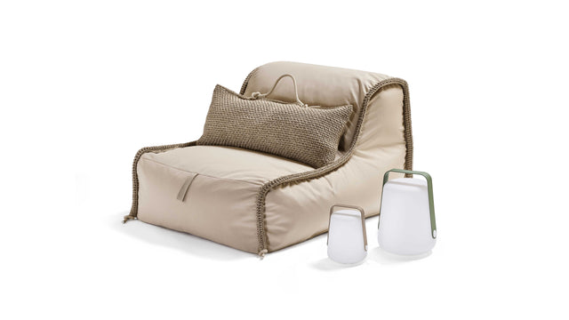 SHOPA new family of poufs by iota. Poufs with backrests, wide and narrow, ottomans, that can stand each on its own, and together create a versatile seating system. Enables comfortable and accommodating seating, suitable for outdoor spaces as well as indoors.
