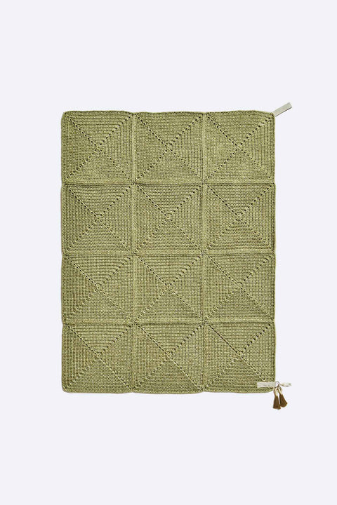 The classic crochet granny square takes a contemporary twist in this outdoor rug. Large squares form the rug from handmade UV protected bespoke iota yarn. The textile is soft, yet durable and suitable for interior and exterior spaces. This collection pairs thick and artful crochet with smart, high level tailoring.