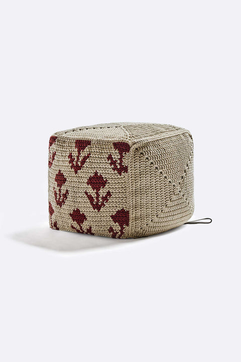 A graphic, pixel like interpretation to the Rosette motif, made into a pattern. Inspired by transportation upholstery textiles and esthetics from the Bauhaus period, while dreaming about travelling the world. Perfect as an additional seat or as a footstool, this pouf is 100% handmade from UV protected acrylic. Use indoors or carry it outdoors and use it on your balcony or terrace.